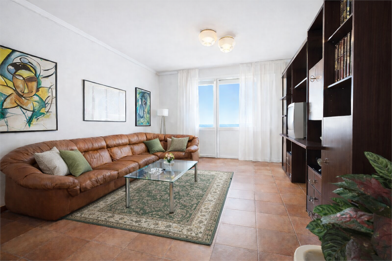 L’ingresso conduce ad una zona giorno spaziosa e ben distribuita, con area living e zona pranzo, valorizzata da ampie aperture che garantiscono luce naturale durante tutta la giornata.