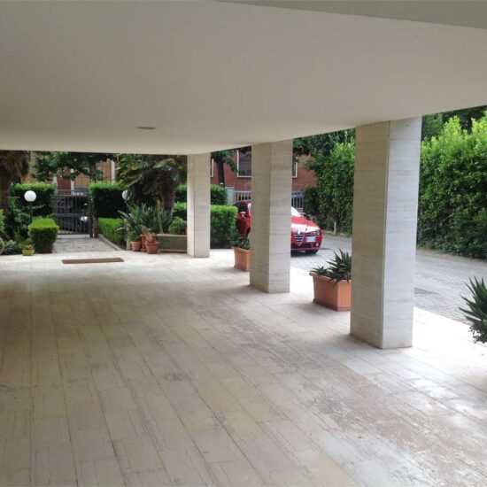 E’ presente il serivizio di portineria e il posto auto all’interno del giardino condominiale.