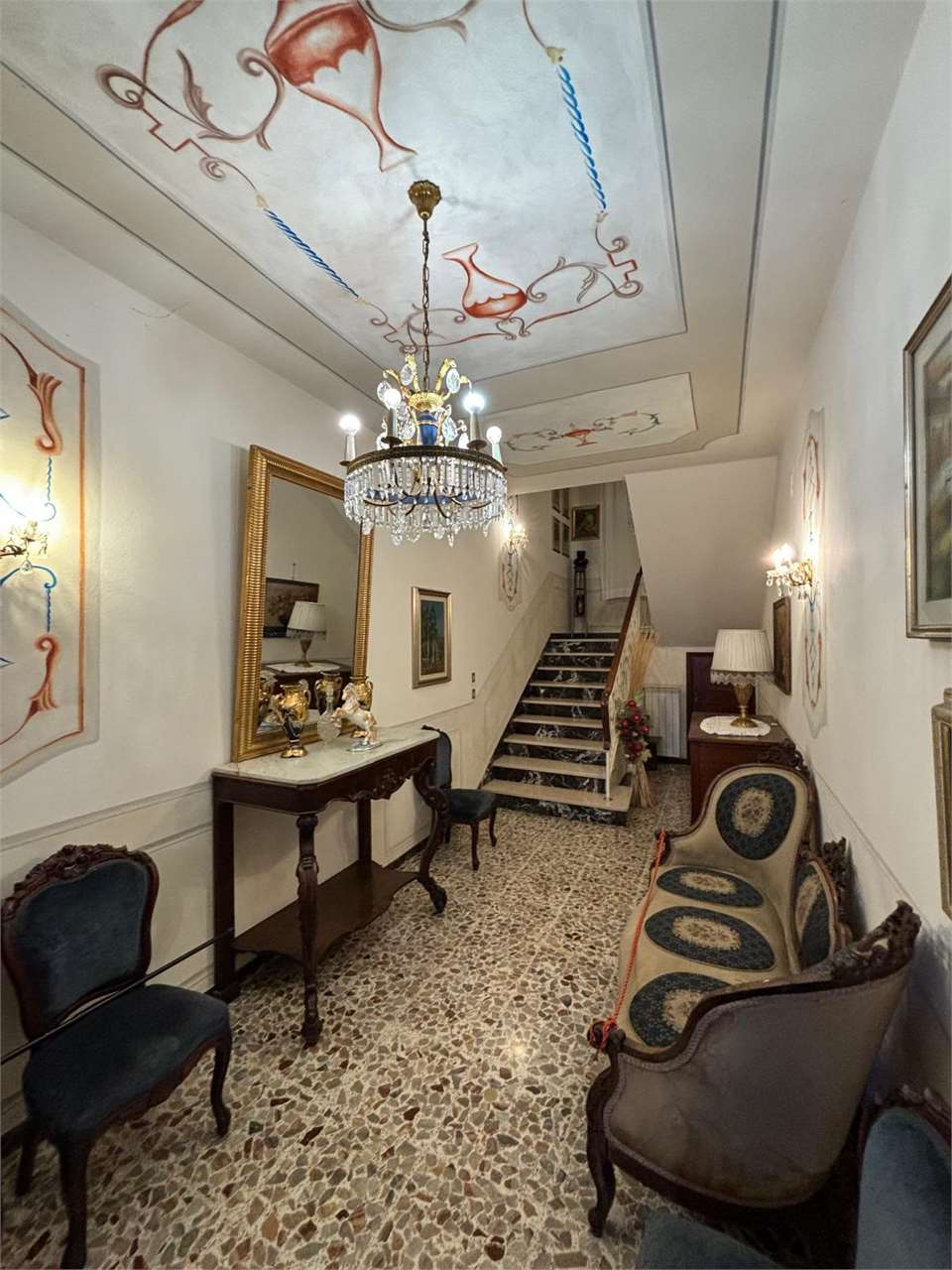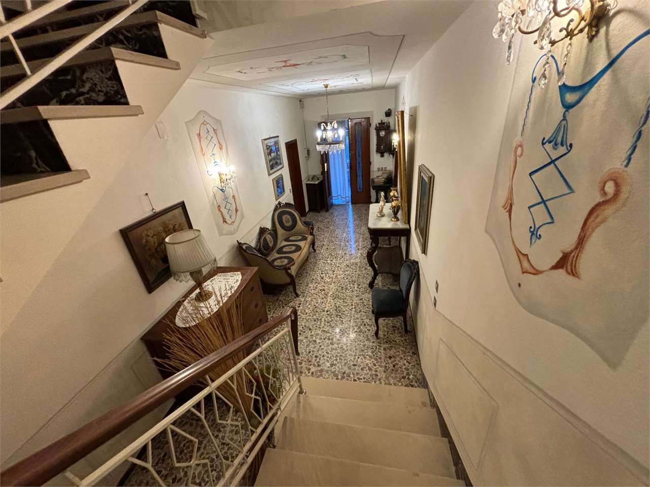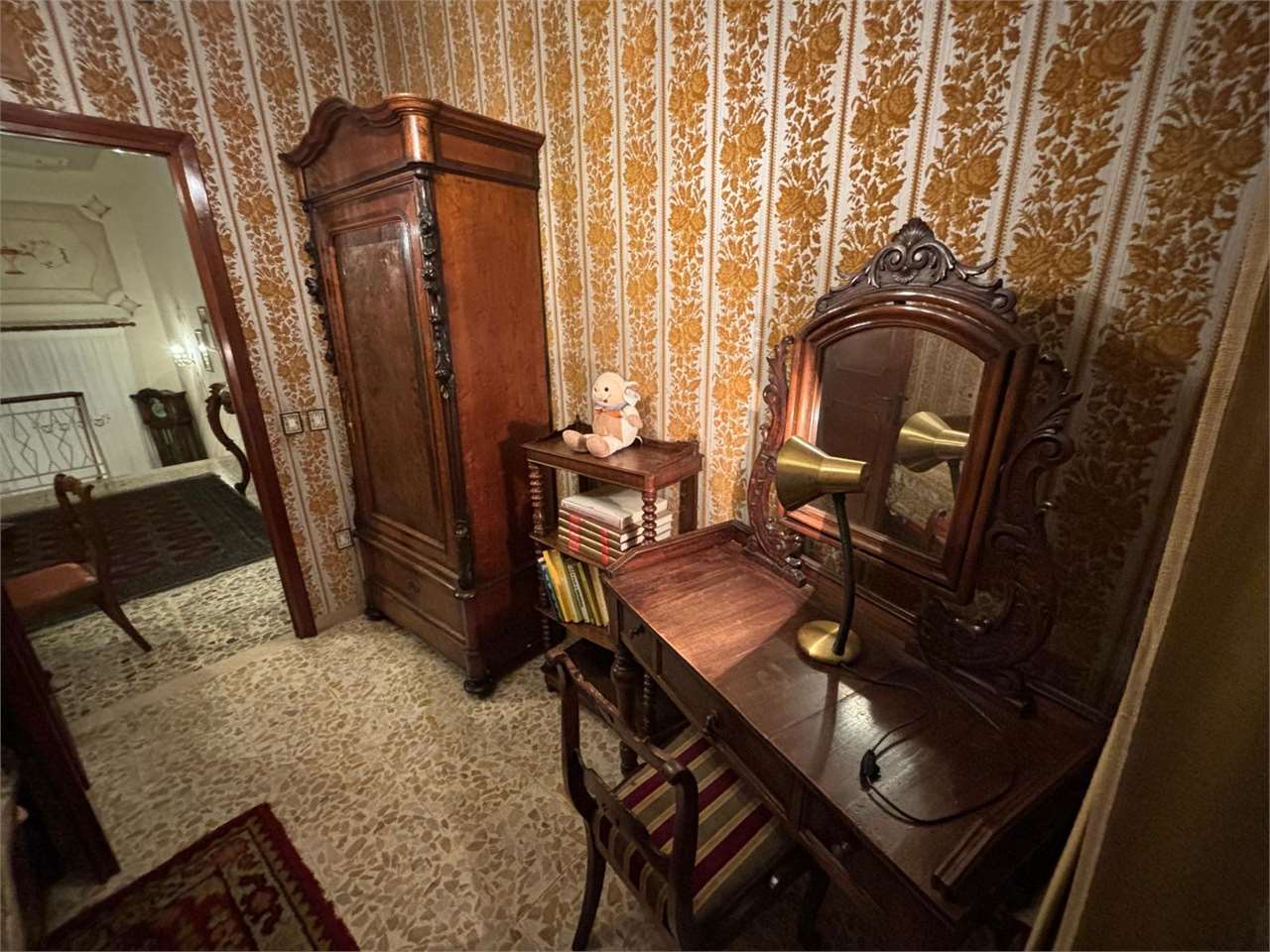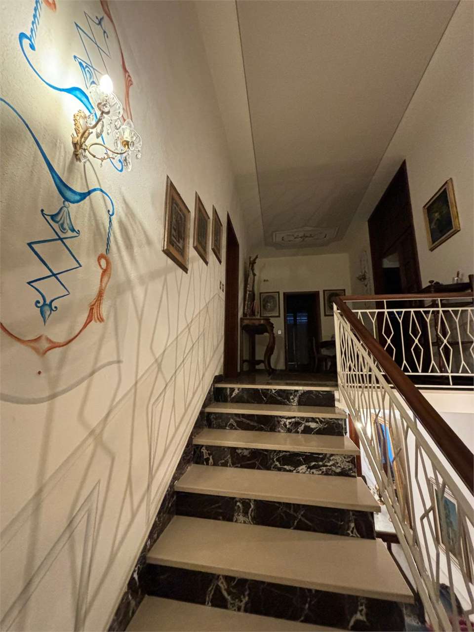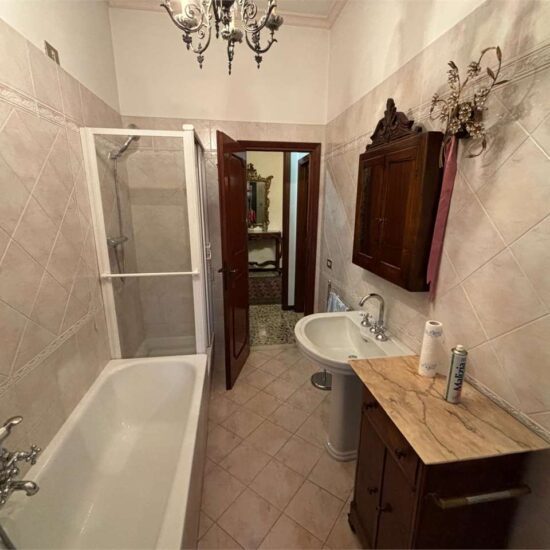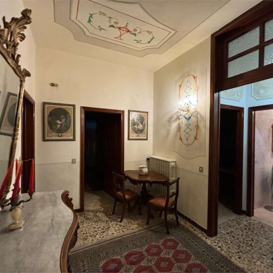 Al piano primo troviamo, invece, un’ampia residenza familiare con accesso indipendente dal piano terra tramite un ingresso molto spazioso. L’appartamento si apre su una distribuzione classica e funzionale; la zona giorno presenta un grande disimpegno d’ingresso, sala da pranzo abitabile e cucina separata. Vi è, poi, un pratico ripostiglio adiacente alla cucina con accesso a un sottotetto parzialmente praticabile, perfetto come area storage. Un secondo disimpegno conduce a due ampie camere matrimoniali, un bagno e un ulteriore vano ideale come studio o camera singola.