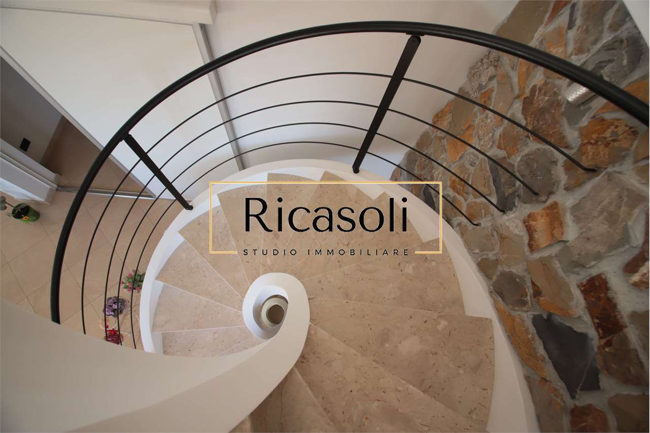 La proprietà si sviluppa su tre livelli, armoniosamente collegati da una scala realizzata con gusto artistico, e gode di spazi ben distribuiti e funzionali.