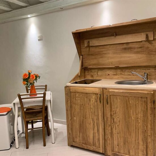 Internamente è ben organizzato e funzionale: ambiente unico con zona giorno, angolo cottura e spazio notte, bagno con doccia e cabina armadi. Nessun intervento necessario.