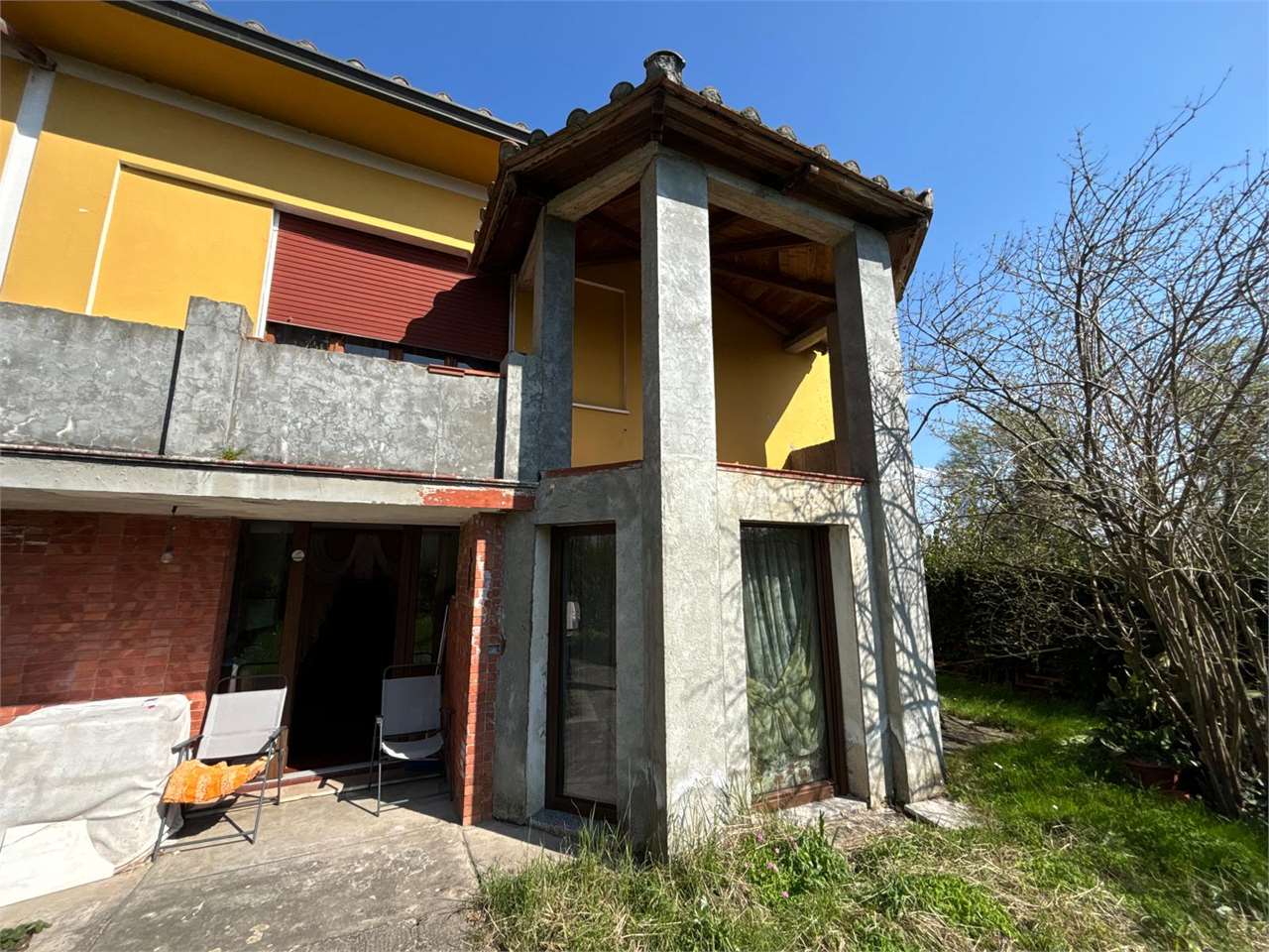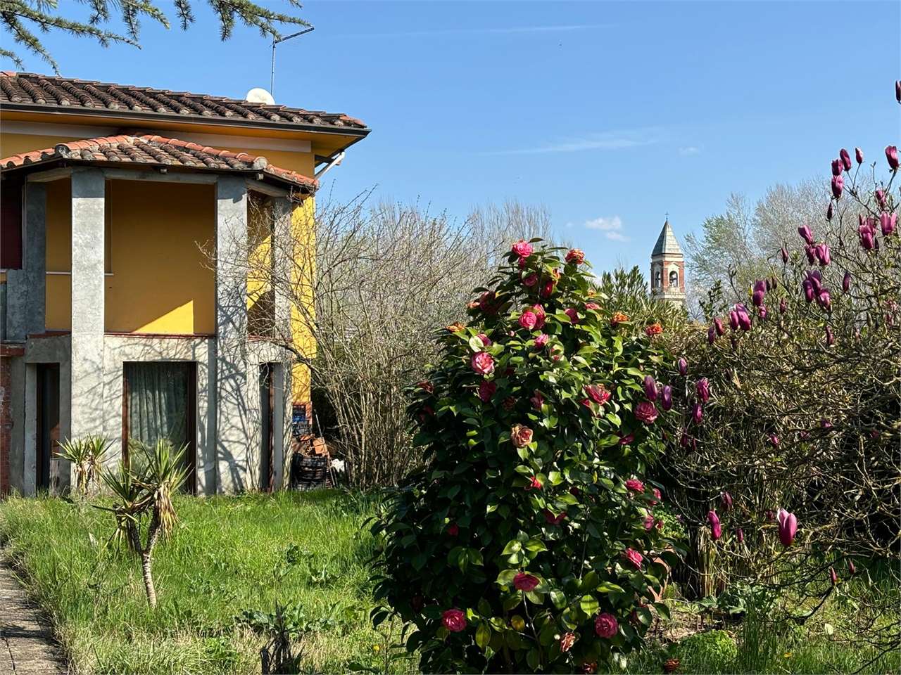 All’esterno, la villa è circondata da un giardino privato di circa 600 mq, uno spazio verde perfetto per il relax all’aria aperta dove si trovano anche dei locali accessori pronti per essere ripristinati come magazzini, officine per hobby o ricoveri per animali.