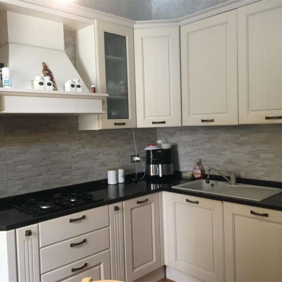 L’immobile è composto da ingresso con corridoio, 4 camere di cui 2 matrimoniali e 2 medie, salone doppio, cucina abitabile che dà accesso al balcone, 2 ripostigli e bagno con finestra non molto grande ma essenziale e funzionale.